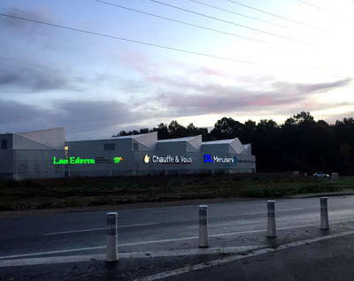 LOKi renforce la visibilité avec la fabrication de lettres découpées en aluminium pour la réalisation d’une enseigne lumineuse extérieure XXL en relief : lettres boitiers en aluminium thermolaqué, faces en plexiglas « black and white » et vinyle diffusant bleu avec un éclairage LED pro.