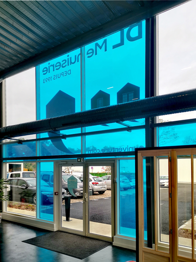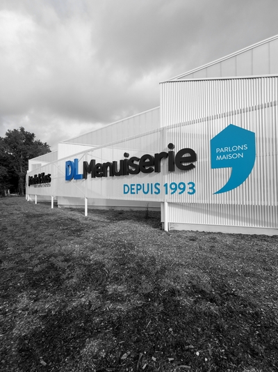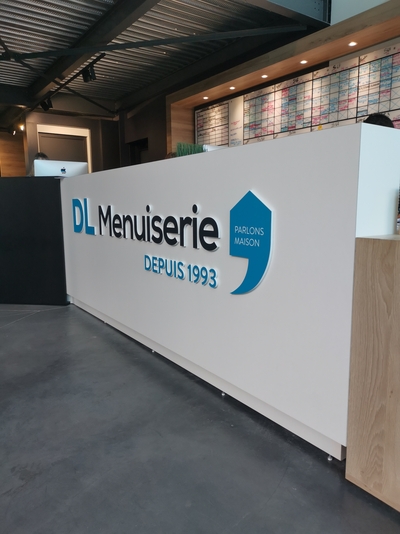 Spécialiste de la menuiserie à Bordeaux et en Gironde, DL Menuiserie nous a missionné pour leur nouvelle agence du Taillan dans la réalisation de leur signalétique extérieure et intérieure.