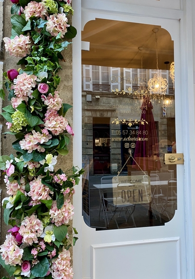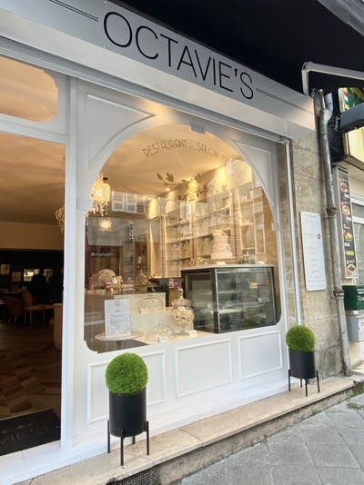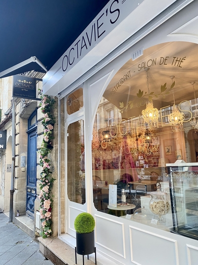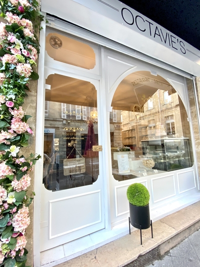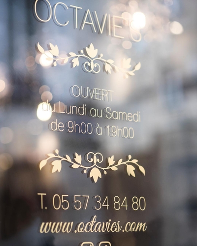 Situé dans le cœur historique de Bordeaux, le salon de thé Octavie’s à l’ambiance très « 18e siècle » nous a permis d’innover en proposant des moulures pour l’habillage de la vitrine. En effet, notre cliente souhaitait une vitrine « à l’ancienne » sans utiliser de bois car le coût aurait été bien supérieur. Nous avons relevé le défi en proposant tout d’abord un changement radical de couleur, passant du noir au blanc. Ensuite, un savant mélange de décoration adhésive, de lettrages en vinyle doré et de moulures nous a permis de donner du relief à l’ensemble. Pour finir, nous avons installé un caisson drapeau pour augmenter la visibilité de la boutique.