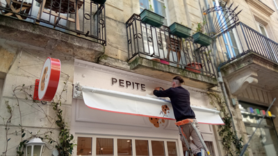 Boutique girondine présente au Cap-Ferret et à Bordeaux centre, le lieu de la gourmandise sans équivalent nous a fait confiance pour le développement du branding de la marque. Le design invite le prospect à la découverte de douceurs sucrées, environnement bi-colore blanc et terra-cota, signalétique faites de lettres en relief, d’une enseigne drapeau monobras au listel laqué, store blanc, chevalet de trottoir, gestion des imprimés et de la PLV boutique. Une relation privilégiée est en place pour développer la marque en franchise, nous mettrons toute notre expérience et notre savoir-faire dans cette nouvelle aventure pour apporter solutions et innovation des futurs points de vente Pépite Cookie. Alors pour ceux qui n’ont pas encore poussé la porte blanche : attention addiction en vue !