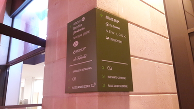 Un tel lieu nécessite une signalétique adaptée au plus grand nombre. C’est en reprenant les codes et nomenclatures définis par la Promenade Sainte-Catherine que LOKi a pu travailler régulièrement au cœur de Bordeaux. Les changements de stores et d’enseignes en fonction des nouvelles arrivées de commerces, les fléchages à adapter, les décorations murales ou au sol qui rythment les saisons : c’est tout au long de l’année que LOKi peut laisser s’exprimer le talent de ses poseurs.