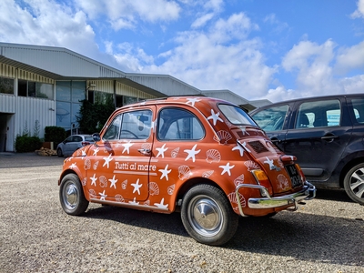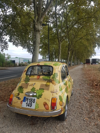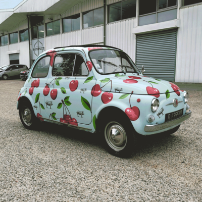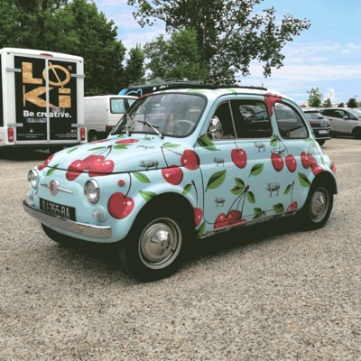 L'enseigne bordelaise Ragazzi Da Peppone nous a consulté pour la réalisation d'un repiquage décoratif spécial covering haut en couleur, réalisé sur des sublimes FIAT 500 vintage des années 60. Le traîtement en vinyle découpé est associé à de l'impression numérique sur vinyle haute performance avec film de lamination anti-UV pour une meilleure durabilité. LOKi attache beaucoup d'attention dans le respect des formes, des carrosseries de ces petits bijoux traversant le temps. Des FIAT 500 pour le lancement des nouvelles cartes du plus italien des restaurants bordelais !