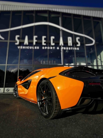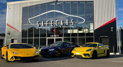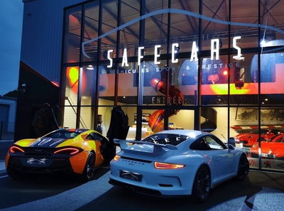 Spécialiste de la vente de voitures de prestige, Safecars a fait appel à notre agence pour le design extérieur de son nouveau Show-room situé aux portes du Médoc. Notre bureau d’études associé à notre pôle de graphiste avait pour challenge de créer une enseigne aérienne et lumineuse, ayant pour points de fixation les menuiseries existantes. C’est une mission réussie avec un logo et un nom en lettres boitiers aluminium avec thermolaquage, éclairage LED et surlignage en Fleximat rouge pour mettre en avant le côté sportif des véhicules à la vente.